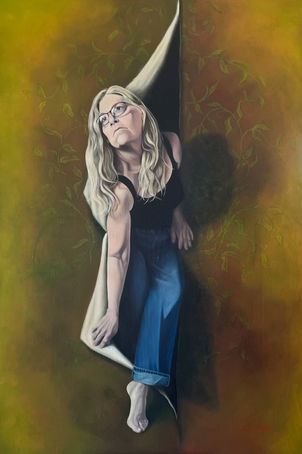 These paintings are interior self-portraits — psychological works rooted in lived experience. They examine female identity at moments where responsibility and conviction meet pressure. Though varied in palette and material, they are unified by psychological terrain.